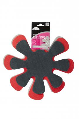 Practical dividers for pans and other kitchen utensils that, placed between them in storage, prevent scratching, especially those with more delicate coatings or treatments. Its flower shape allows a perfect fit to the pieces, protecting both the base and the sides.